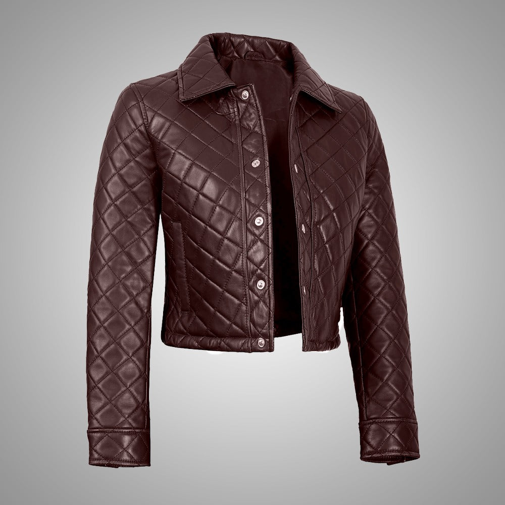 Turn heads wherever you go with this Women’s Dark Brown Cropped Quilted Leather Jacket, a perfect blend of chic sophistication and daring edge. Crafted from 100% real lambskin leather, this cropped jacket is designed with an all-over quilted diamond pattern that elevates your everyday style into something extraordinary.